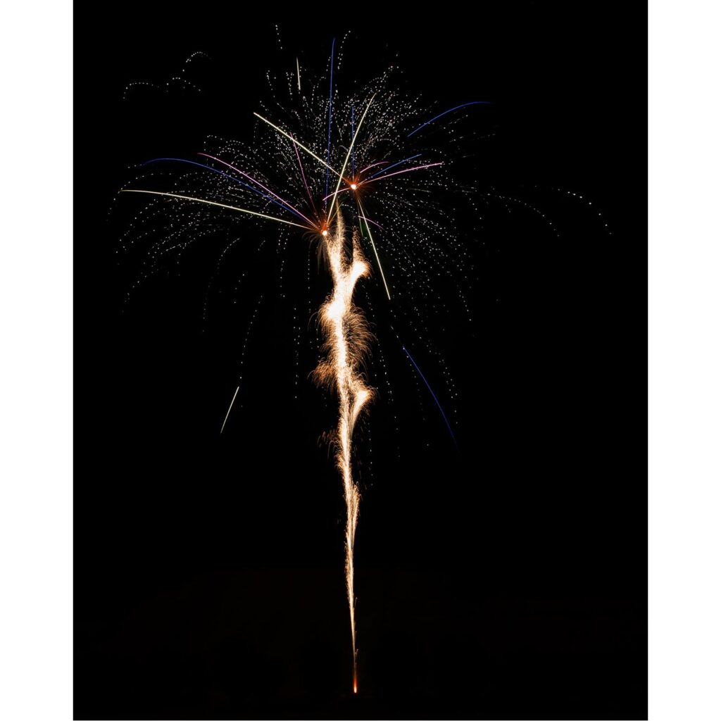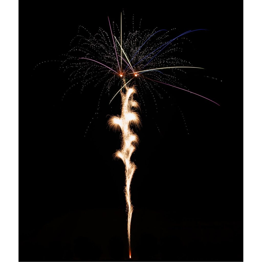 Nur im Freien verwenden. Batterie standsicher auf festen Untergrund stellen und gegen Umkippen sichern. Seitlichen Sicherheitsabstand von mindestens 8 Metern einhalten. Zündschnur freilegen, entzünden und sofort entfernen. Niemals über die Batterie beugen oder nachzünden. Nicht in der Nähe von brennbaren Materialien oder Hindernissen verwenden. Hinweise auf der Verpackung beachten und für Kinder unzugänglich aufbewahren.