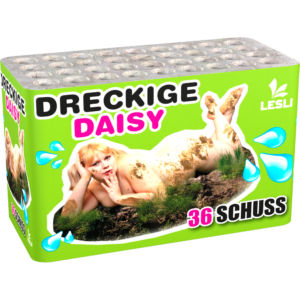 Die „Daisy“ Batterie liefert 36 Schüsse in einem straffen Tempo und kombiniert abwechslungsreiche Effekte. Glitzernde Päonien, knisternde Chrysanthemen und goldene Kokosnüsse sorgen für ein farbenfrohes und dynamisches Feuerwerk.